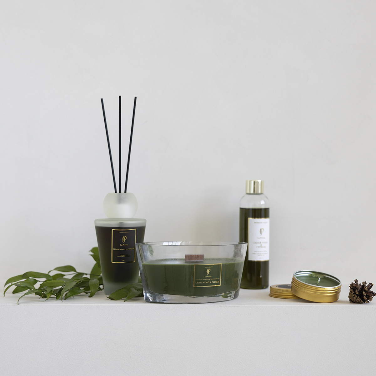 «Cedar wood & cypress» (Кедровое дерево и кипарис) аромат - настроение. Как будто попадаешь в величественный таинственный лес. Пышная хвойная зелень и шумное веселье высоких сводов деревьев. Свежий аромат великолепного кедра подчеркивают богатые ноты сандалового дерева.