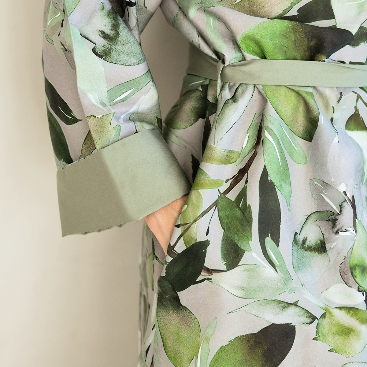 • Удобная модель кимоно с поясом и внутренними завязками позволяет чувствовать себя максимально комфортно. А практичные карманы в швах добавляют удобства в каждодневной носке.