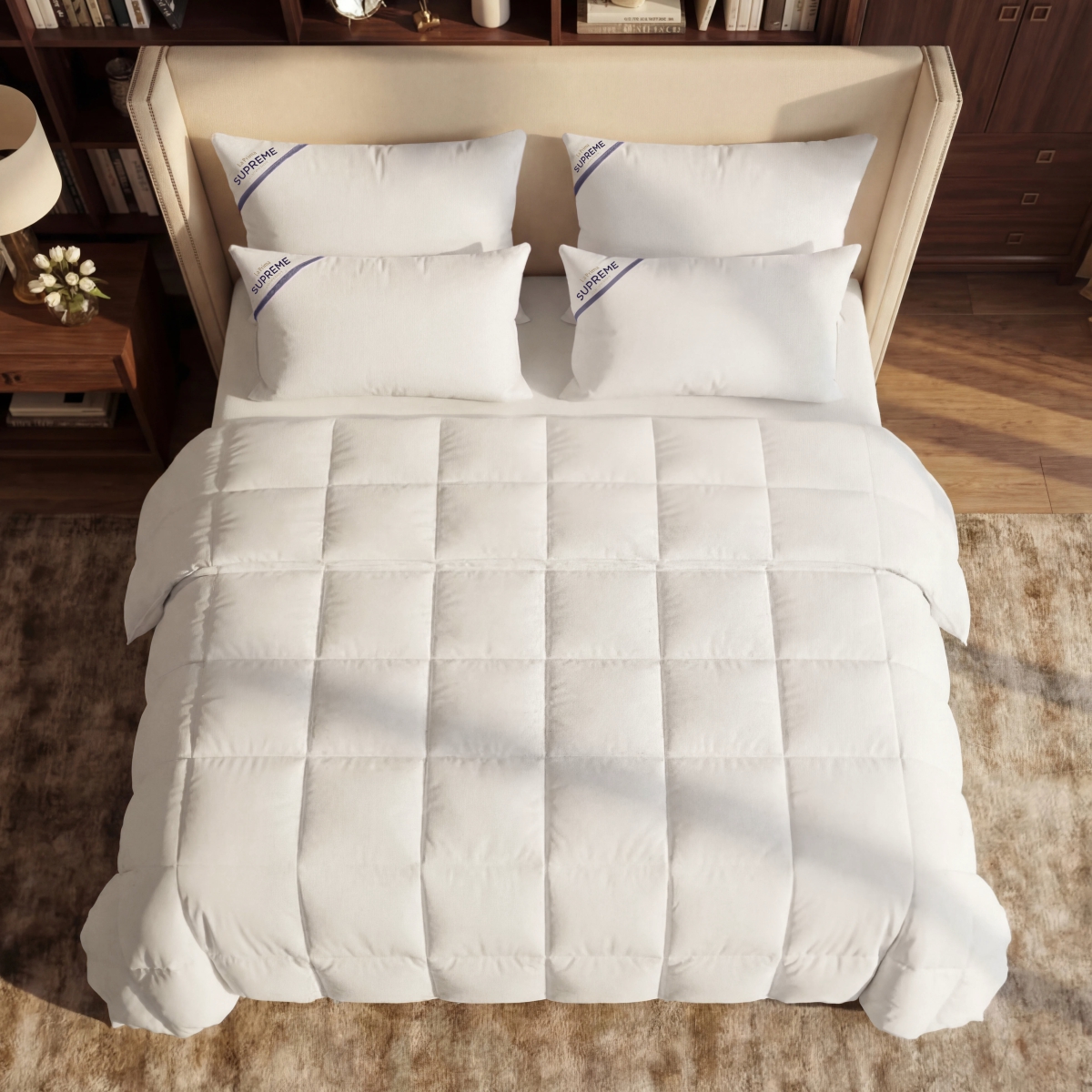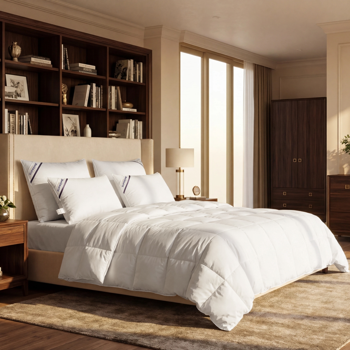 Почувствуйте настоящее сибирское тепло, созданное для вашего идеального отдыха. Коллекция Суприм Лайт/Supreme Collection — это премиальные пуховые одеяла из натурального белого гусиного пуха высочайшего качества. Они дарят невесомое, но интенсивное тепло, адаптируясь к вашему ритму жизни и обеспечивая здоровый микроклимат всю ночь.