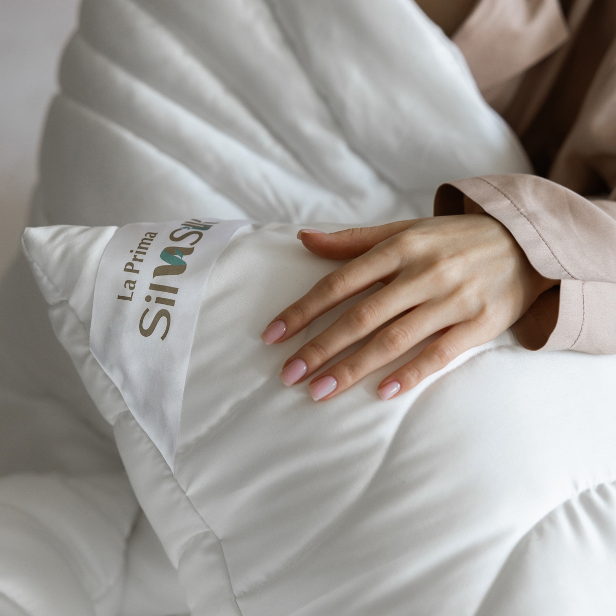 Простота в уходе. Изделия легко стирать в домашних условиях в стиральной машине, съемный чехол подушки можно стирать отдельно, что делает SilvaSilk удобными в повседневном использовании.