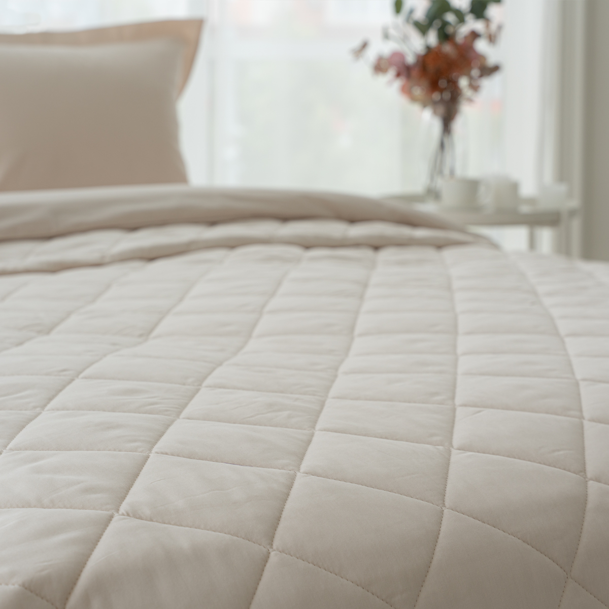 Покрывало стеганое практично: на хлопковой ткани не остается зацепок.