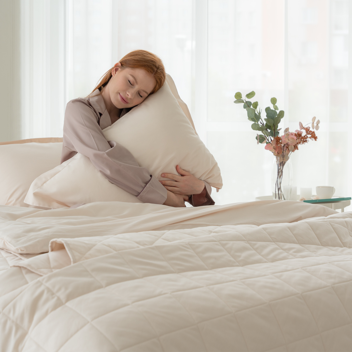 Удобное решение для оформления интерьера в едином стиле - покрывала выполнены в тех же расцветках и из той же ткани, что и однотонное постельное белье La Prima.