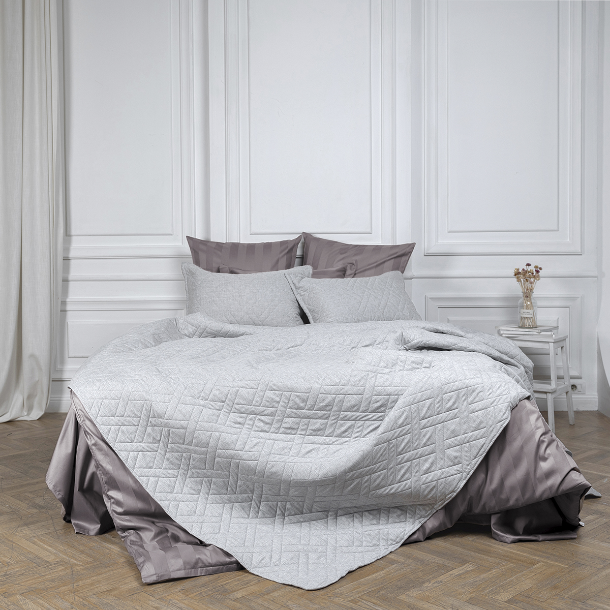 В комплект входит: покрывало на кровать 220x240 см и декоративные стеганые наволочки 50x70 см с ушками – 2шт. Состав: 60% вискозы и 40% хлопка, обеспечивает нежное прикосновение и комфортный сон. Покрывало имеет тактильно приятную Soft Touch фактуру и матовую поверхность для максимального комфорта. Не скользит, идеально принимает форму кровати.