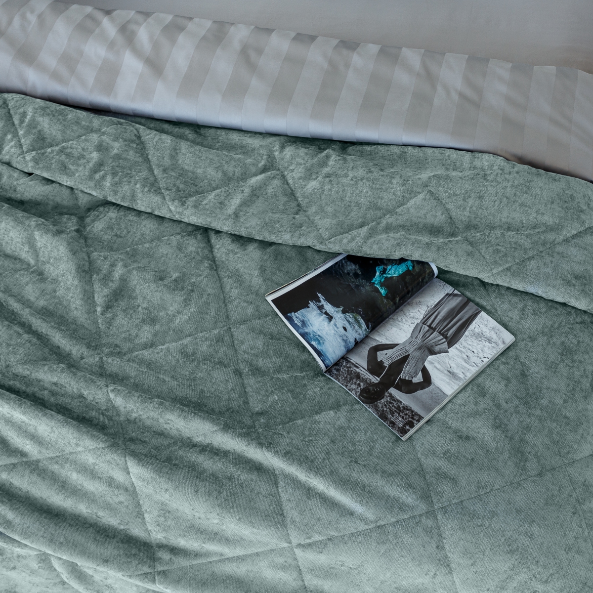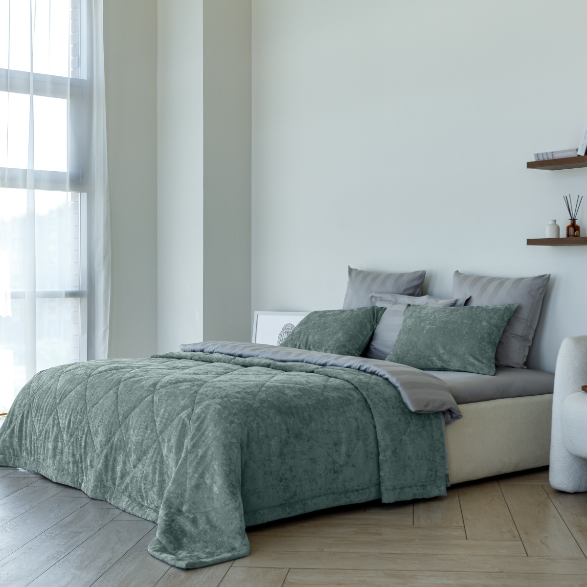 Подклад: микрофибра велюр, за счет своей фактуры он предотвращает скольжение покрывала на кровати.
