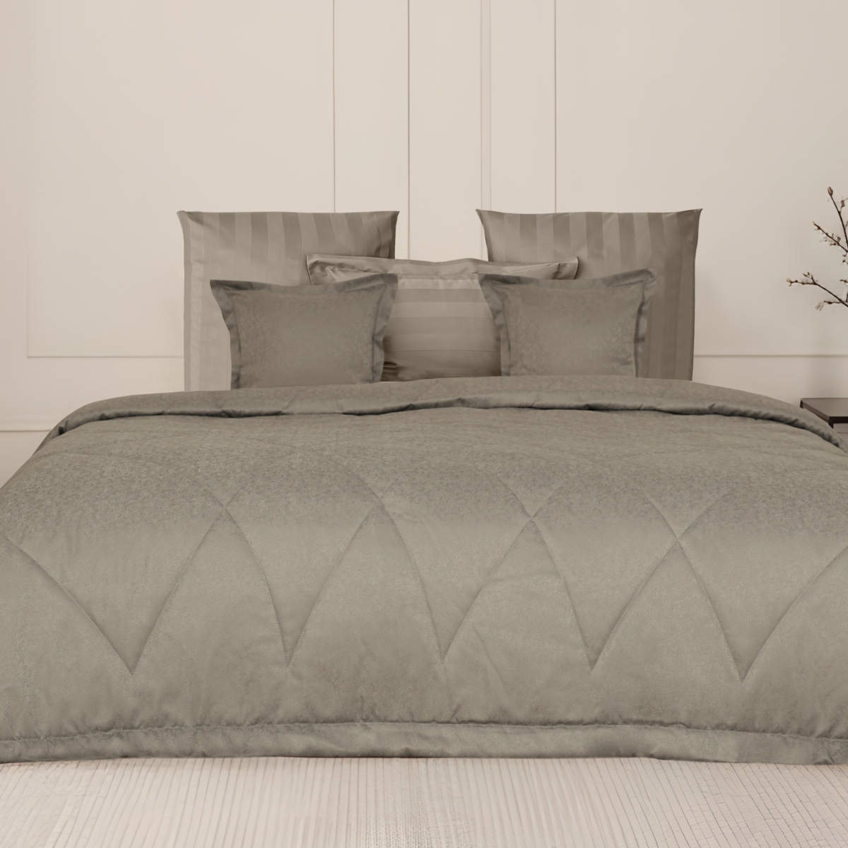 В комплект входит: покрывало стеганое 240х260см и декоративные наволочки на молнии 45х45см