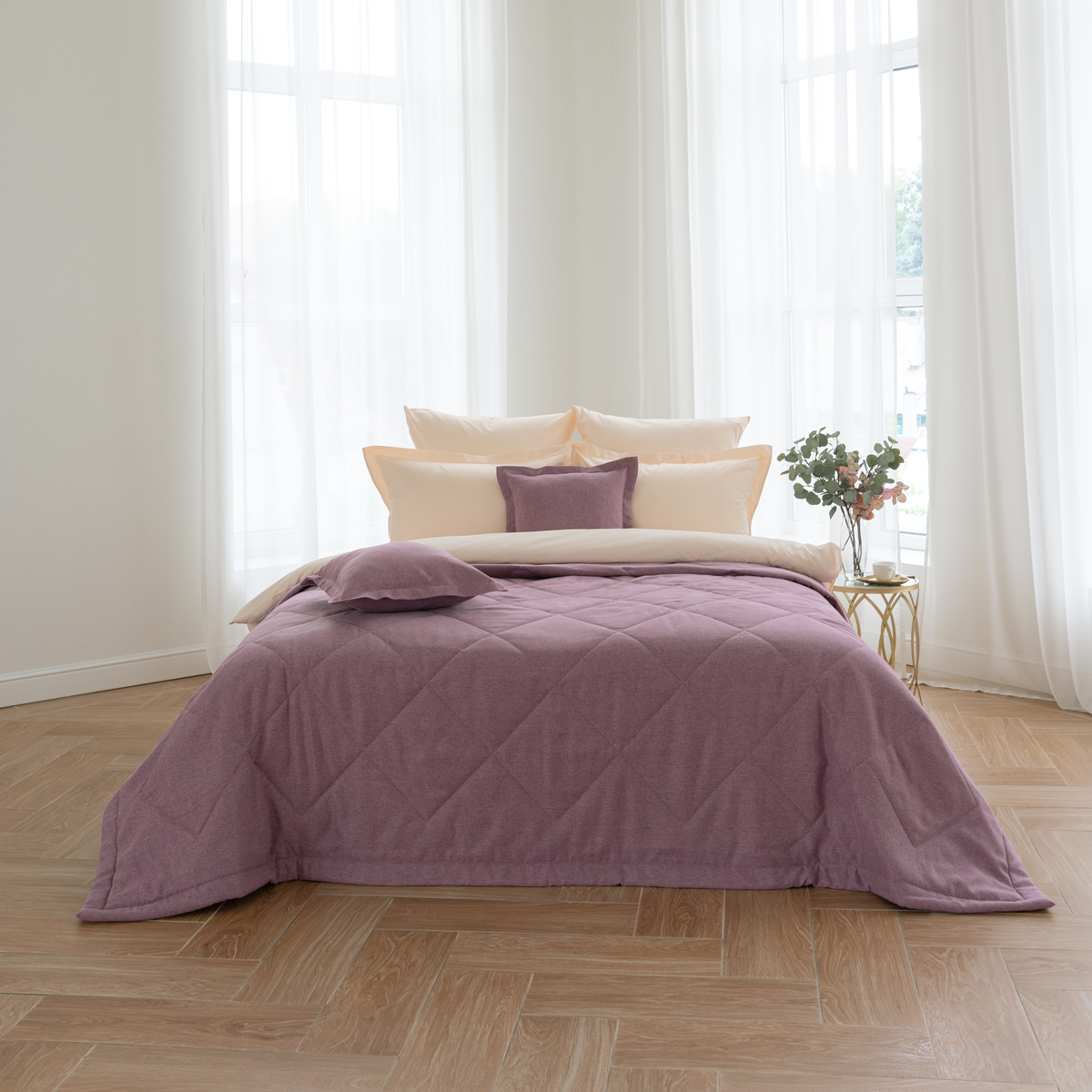 Изысканная и простая красота раскрывается в универсальных и базовых расцветках однотонных покрывал. Фактурная благородная поверхность в виде «рогожки» органично подчеркнет индивидуальность интерьера, выделив в нем только самое важное.