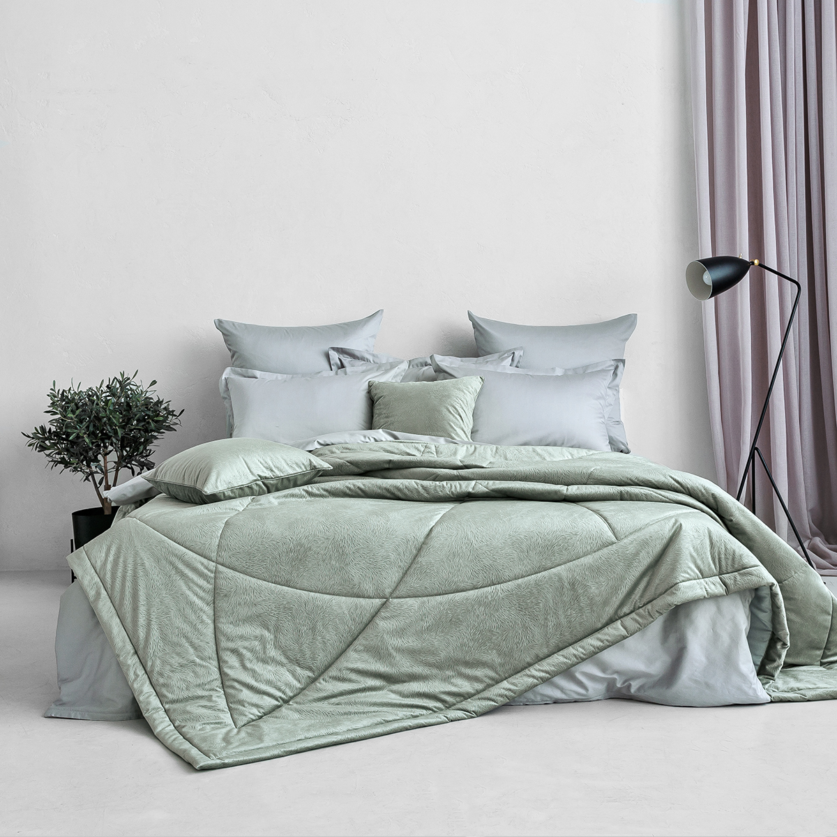 В комплект входит: покрывало стеганое на подкладе 240х260см и декоративные наволочки на молнии 45х45см