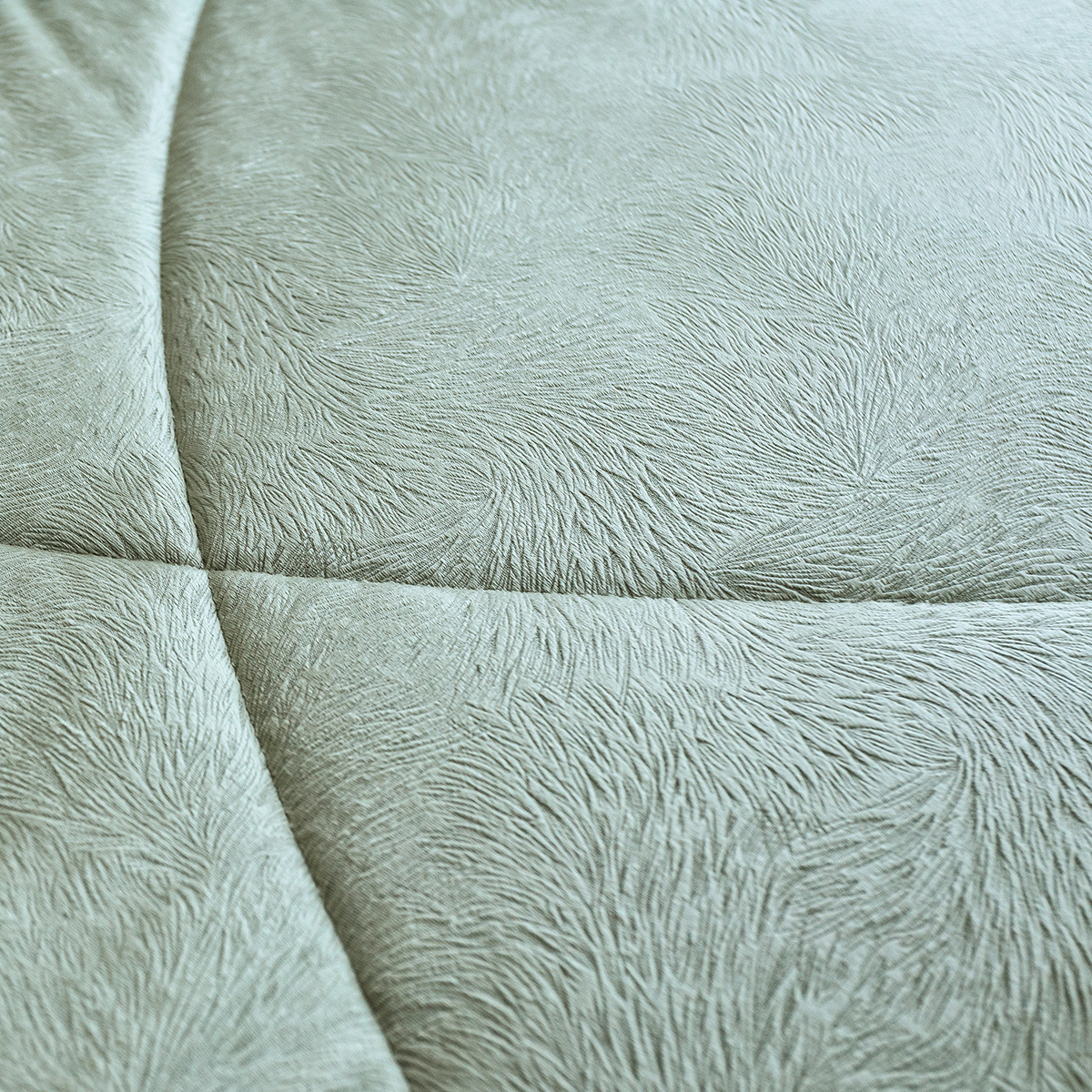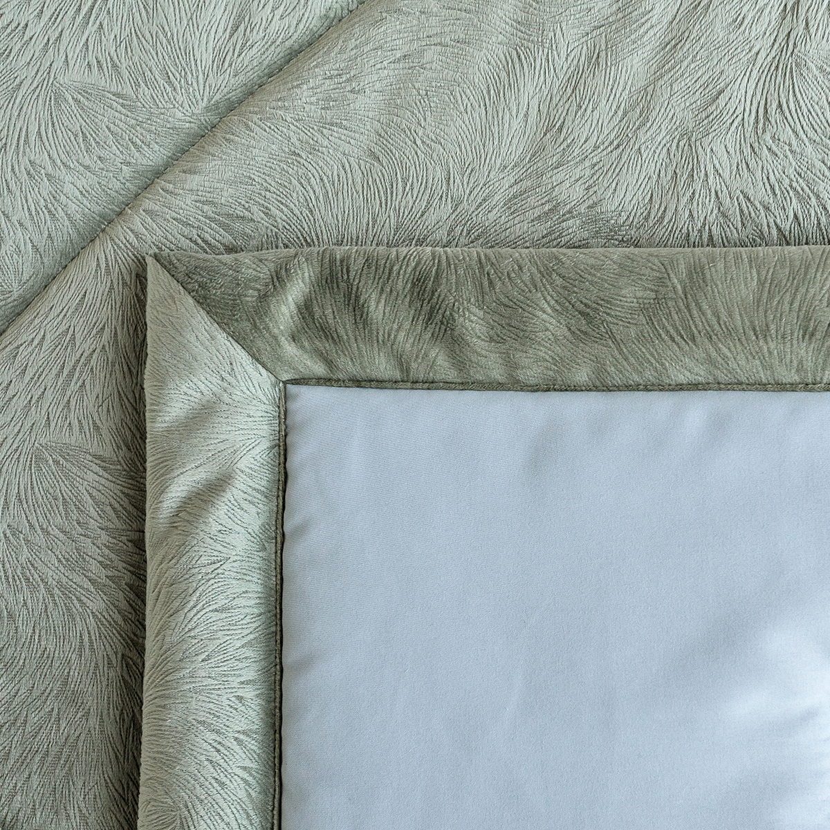 Подклад: микрофибра велюр, за счет своей фактуры он предотвращает скольжение покрывала на кровати