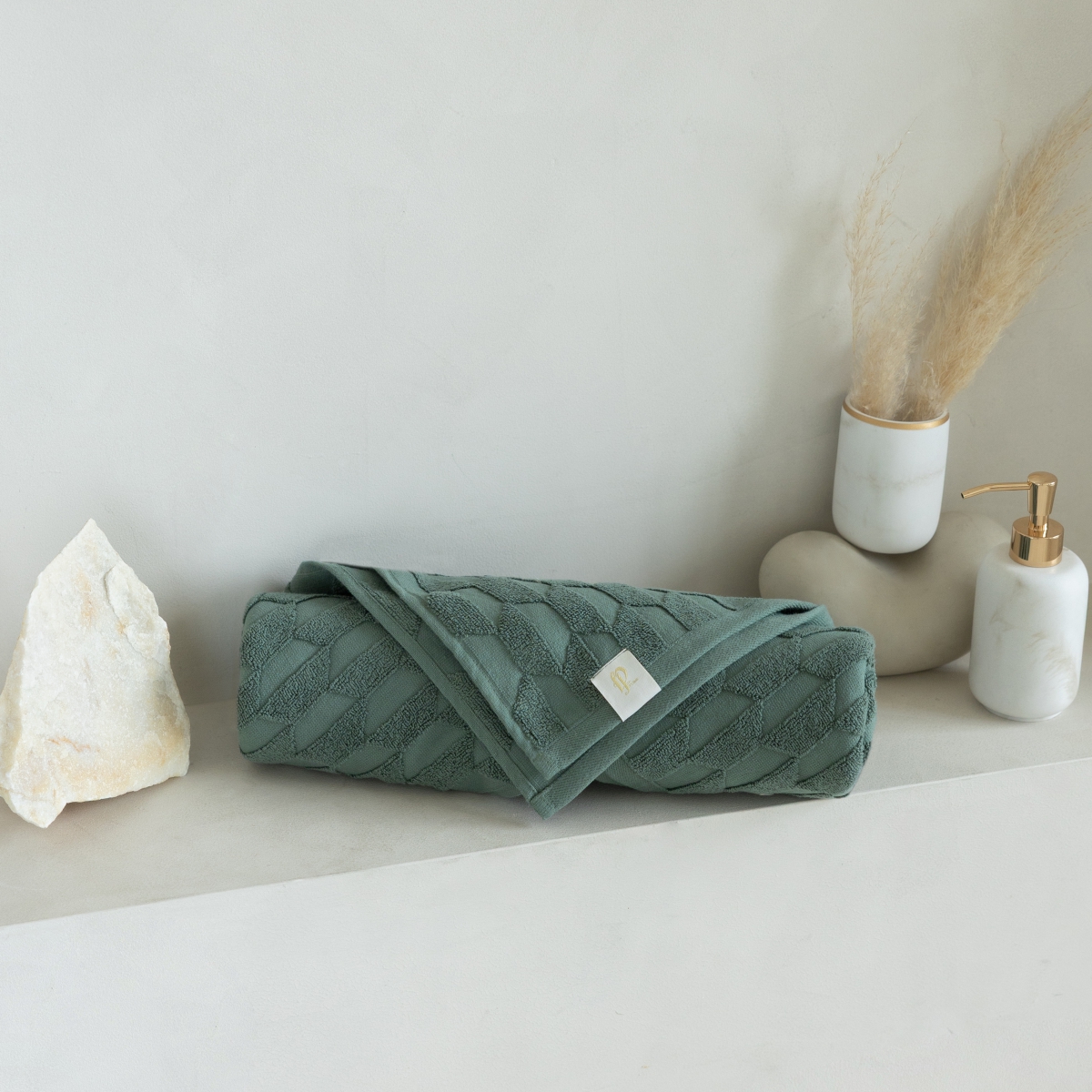 Махровые полотенца Diamond - это не просто полотенца, это воплощение элегантности и комфорта. Вдохновленные сиянием ограненных бриллиантов, мы создали коллекцию с узором в виде геометричной выстрижки, которая напоминает алмазную огранку, создает игру света и тени, превращая обычное полотенце в предмет интерьерного искусства.