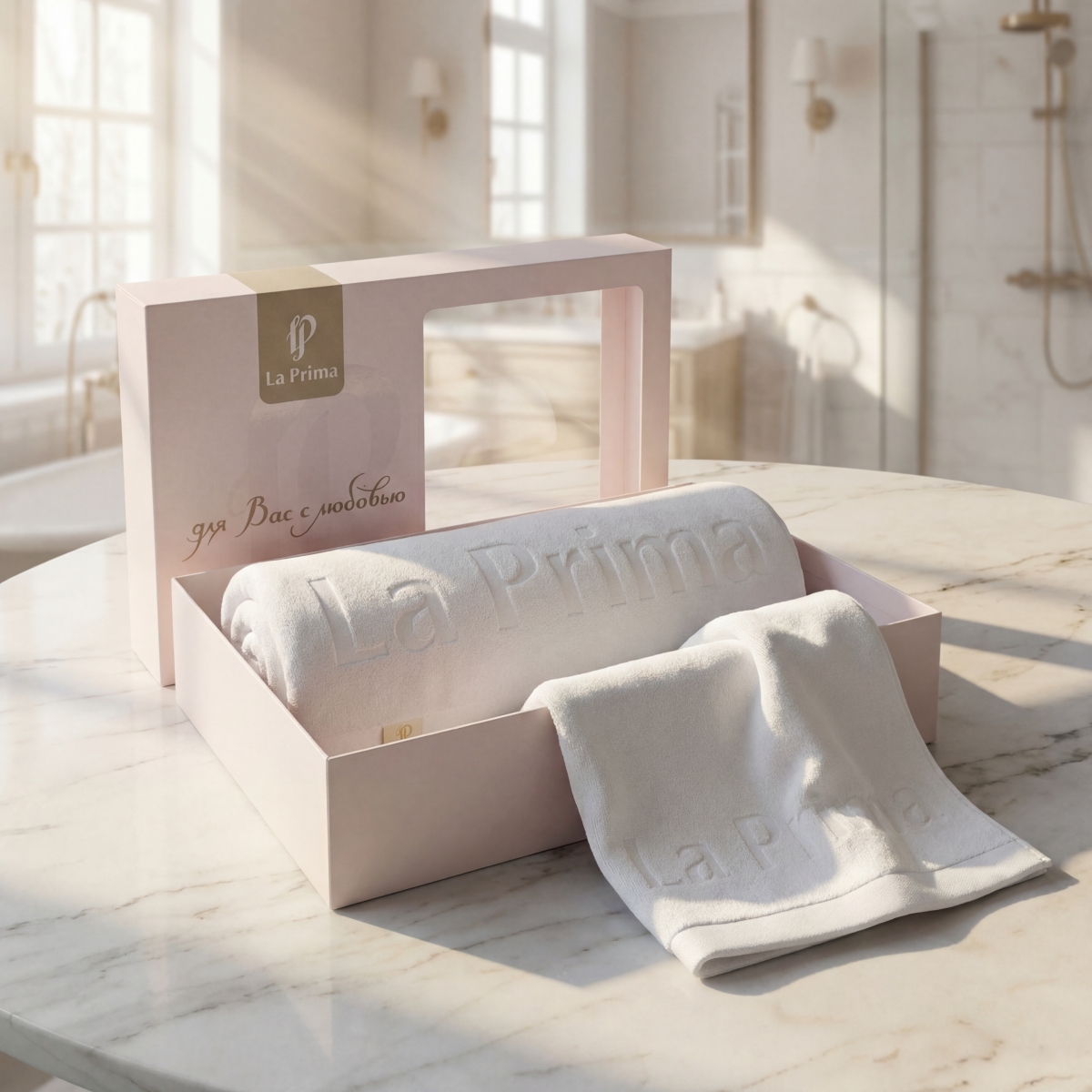 Стильная и деликатная выстрижка логотипа. Наши полотенца украшает элегантное и ненавязчивое лого La Prima — знак отличия для тех, кто ценит детали.