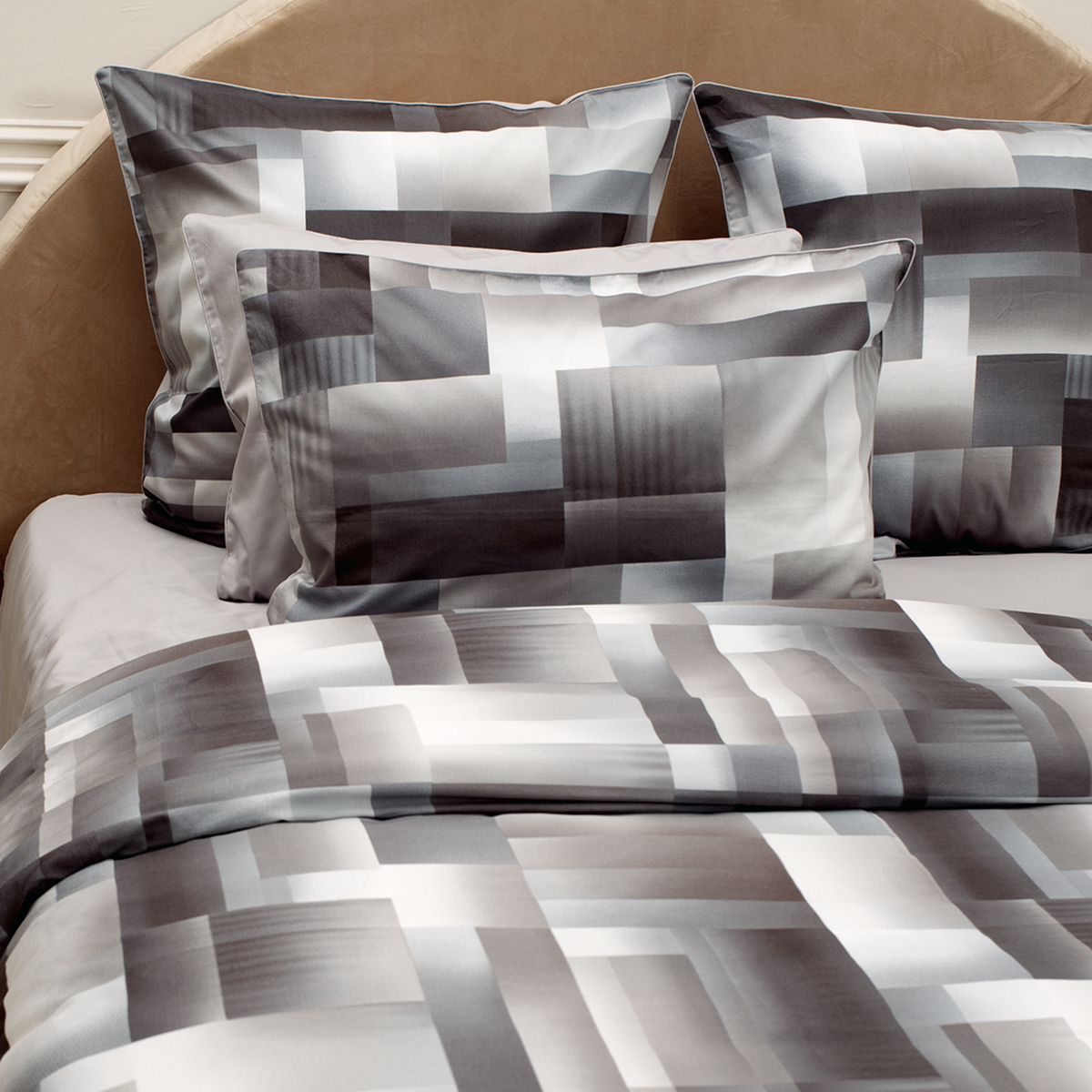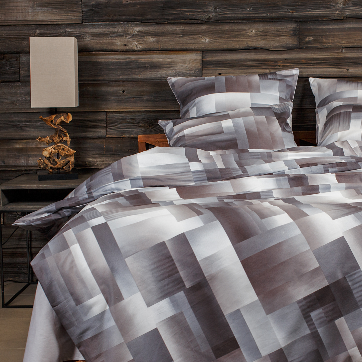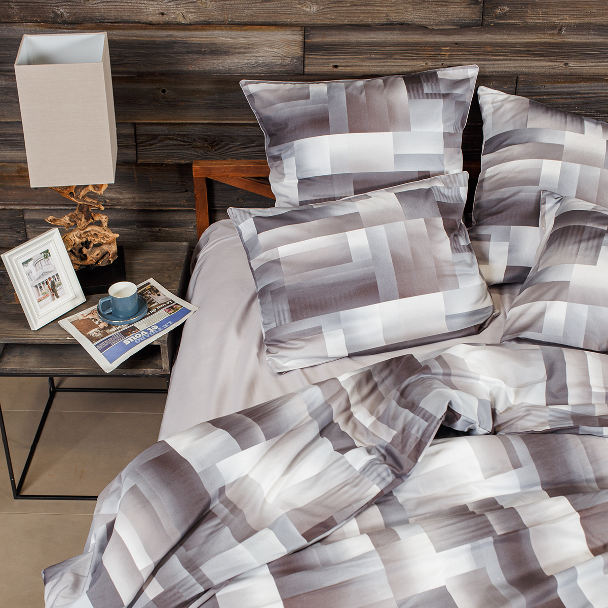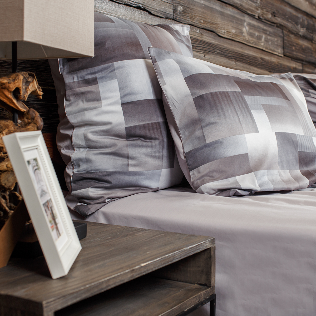 • Наволочки двухсторонние: лицевая сторонагеометрический принт, оборотная – однотонная. Декоративный кант по трем сторонам наволочки. Широкий запах на наволочках - легко менять подушки.