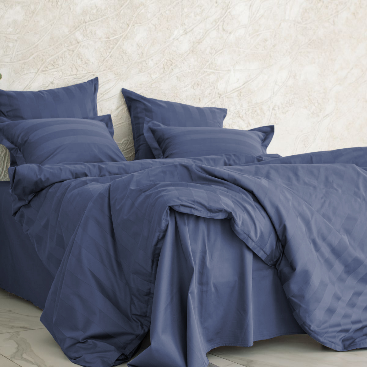 Однотонный комплект постельного белья - роскошный 100% египетский хлопок высшего сорта, с жаккардовым рисунком в виде полос 5х5см. Используется более тонкая 60-я нить. За счет специальной скрутки нити, ткань получается очень мягкая и приятная на ощупь. Имеет благородный блеск.