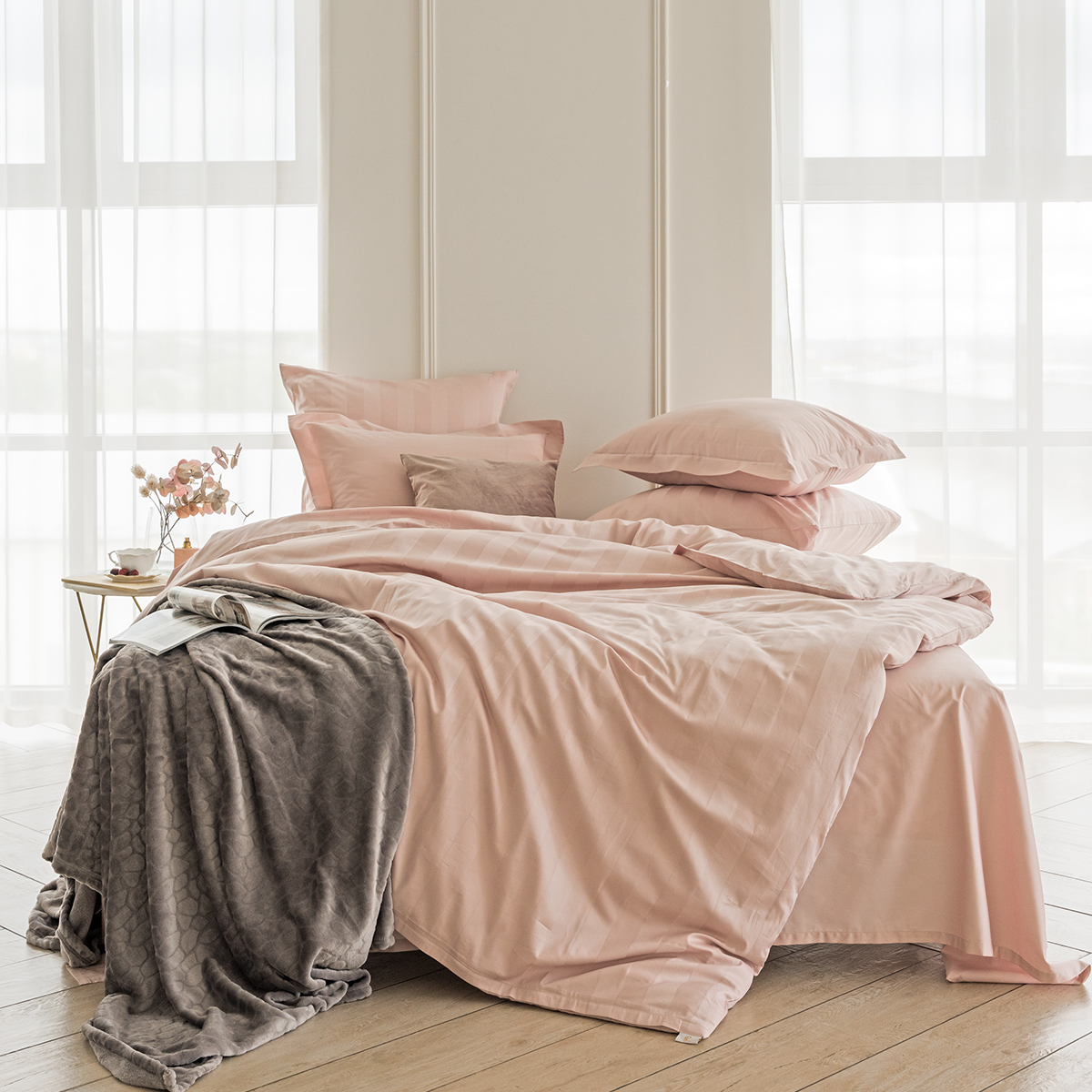 Однотонный комплект постельного белья - роскошный 100% египетский хлопок высшего сорта, с жаккардовым рисунком в виде полос 5х5см. Используется более тонкая 60-я нить. За счет специальной скрутки нити, ткань получается очень мягкая и приятная на ощупь. Имеет благородный блеск.