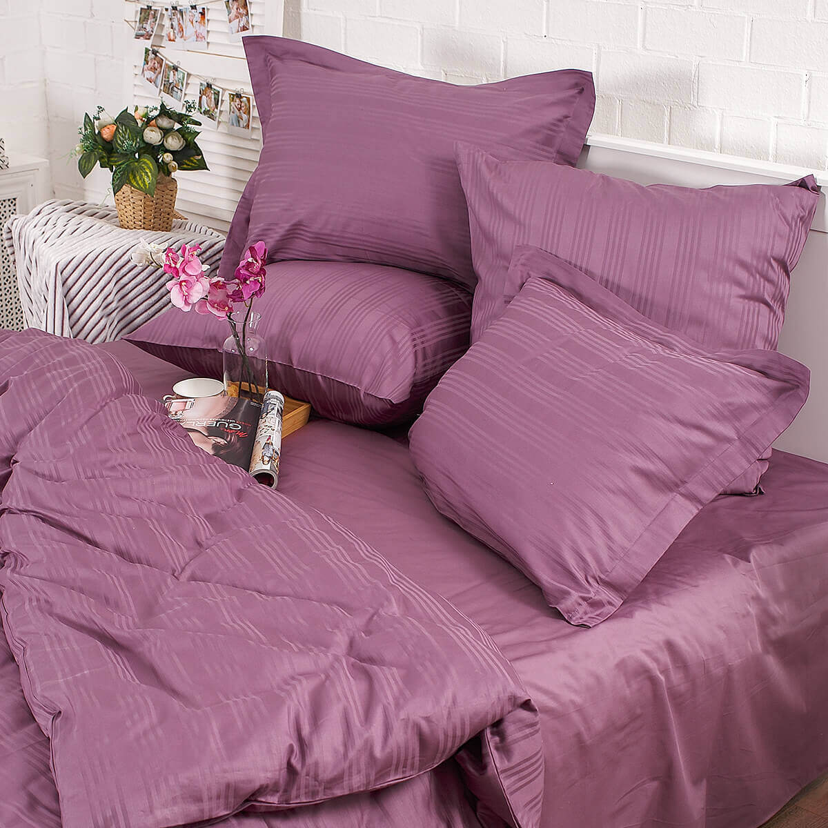 ПОСТЕЛЬНОЕ БЕЛЬЕ СТРАЙП-САТИН ПУРПУРНЫЙ