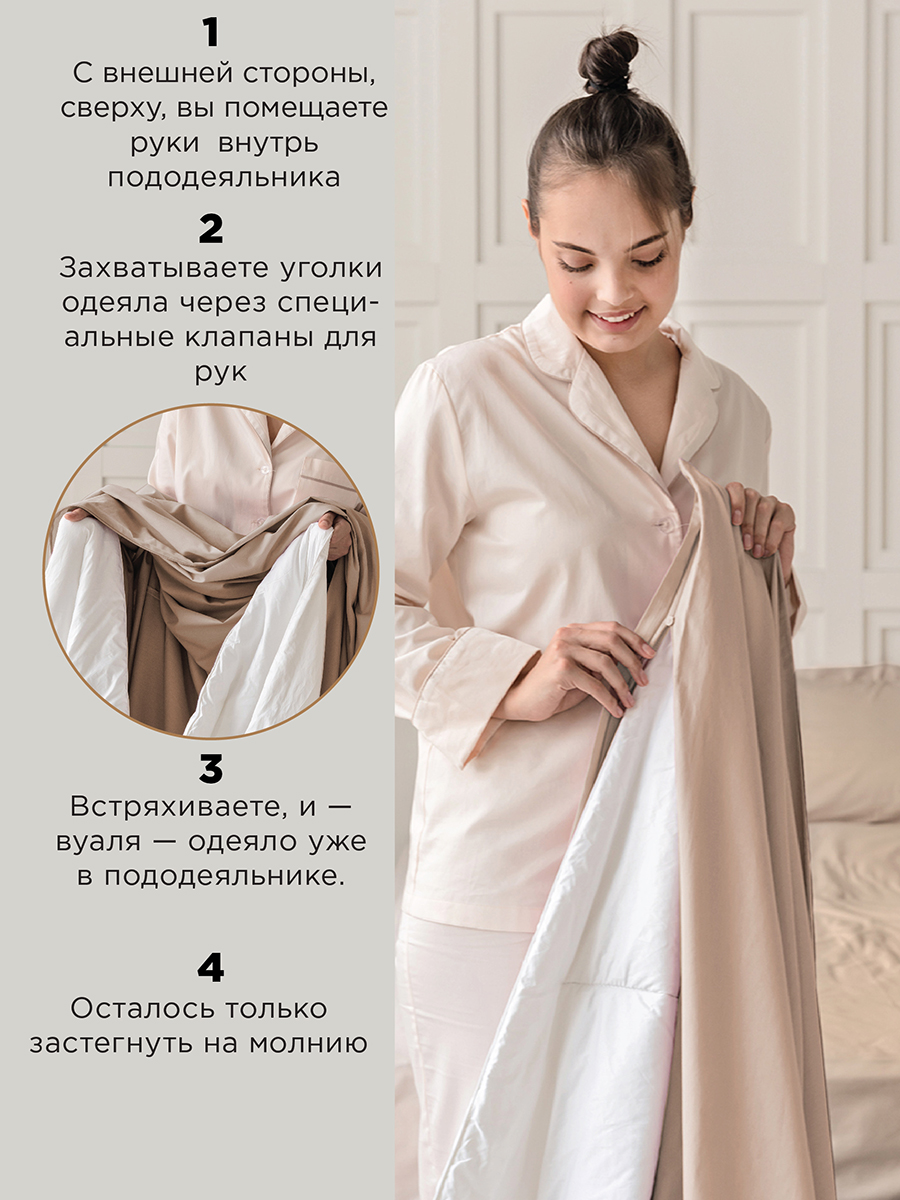 Превратите рутину в ритуал удовольствия. Клапаны для рук в верхней части пододеяльника — это магия, которую нужно испытать. Больше никакого стресса, только легкая улыбка, когда ваше одеяло послушно занимает свое место. Проверенная технология, которую оценили тысячи покупателей! Каждая деталь продумана для вашего комфорта.