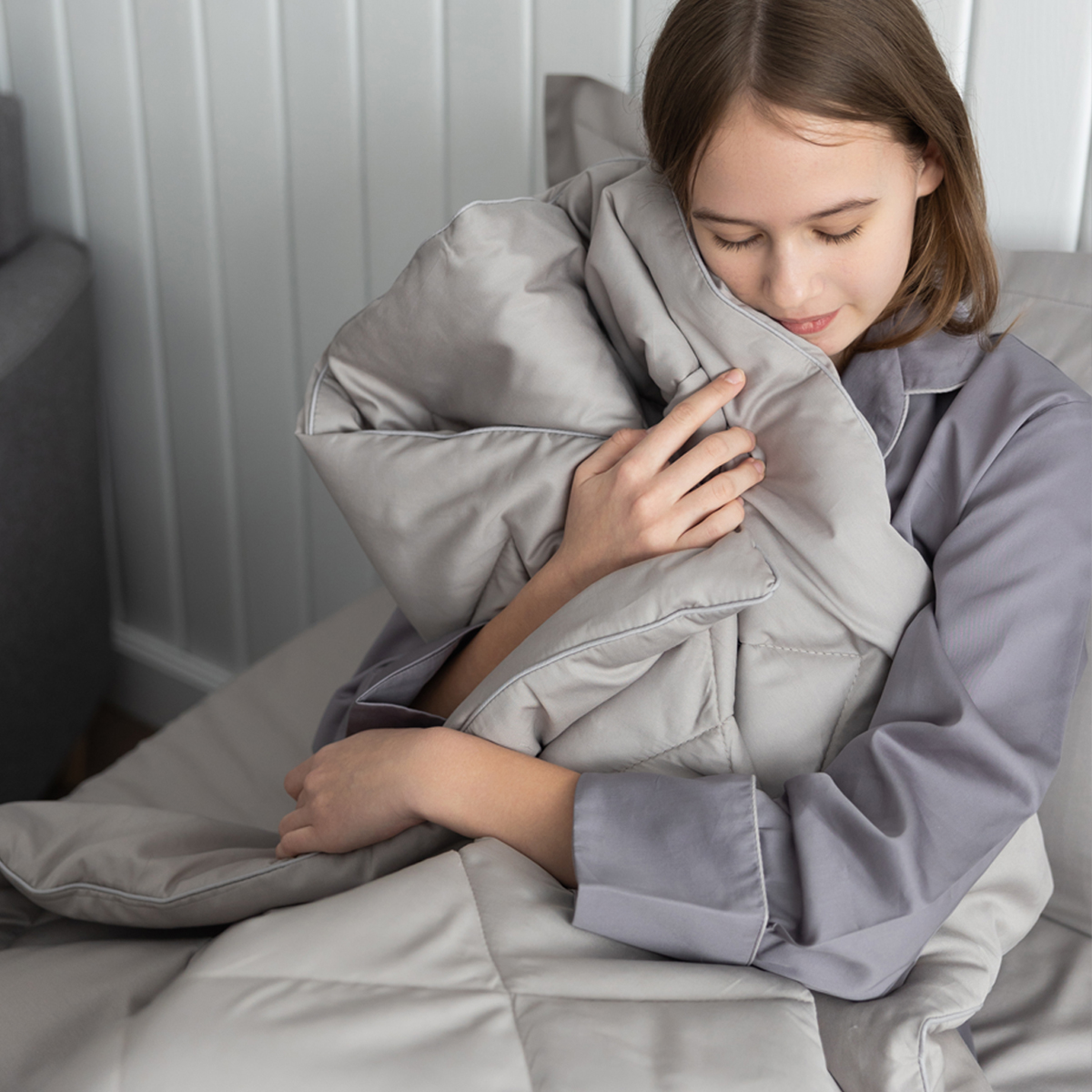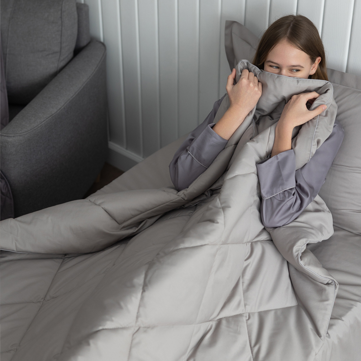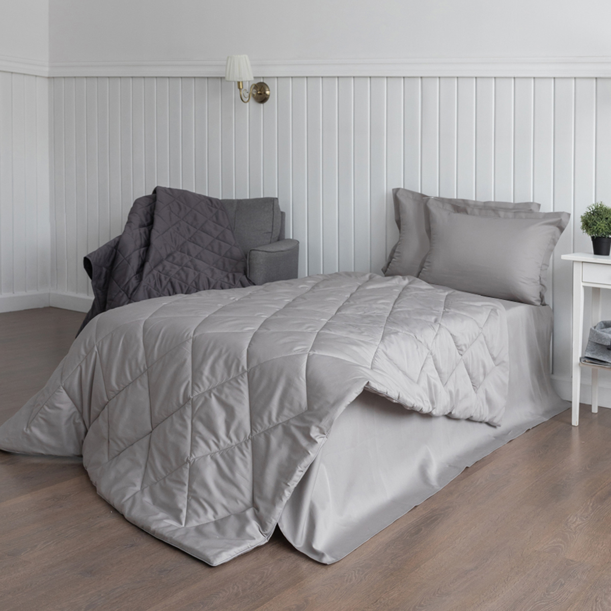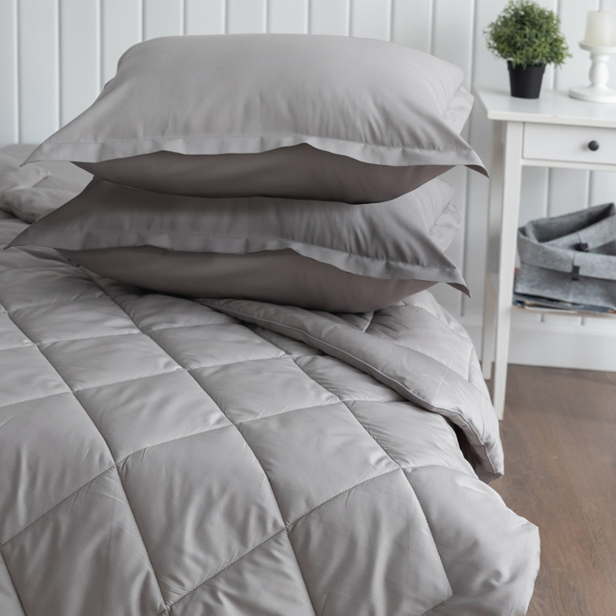 ПОСТЕЛЬНОЕ БЕЛЬЁ САТИН С ОДЕЯЛОМ 2 НАВОЛОЧКИ СЕРЕБРИСТАЯ ДЫМКА