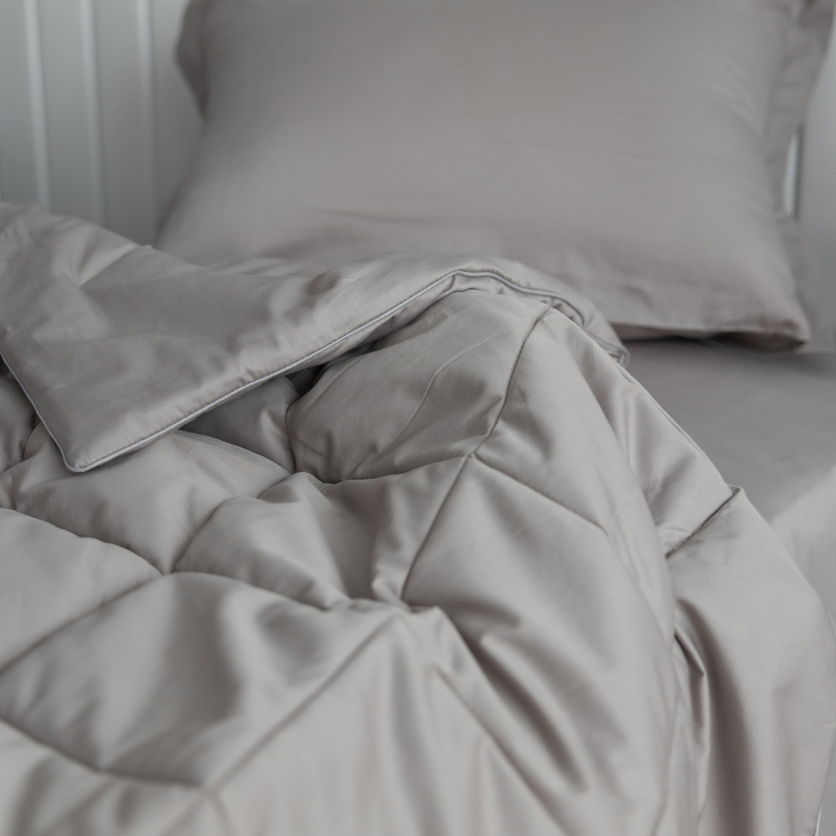 Постельное бельё Cатин | ПОСТЕЛЬНОЕ БЕЛЬЁ САТИН С ОДЕЯЛОМ 2 НАВОЛОЧКИ СЕРЕБРИСТАЯ ДЫМКА
