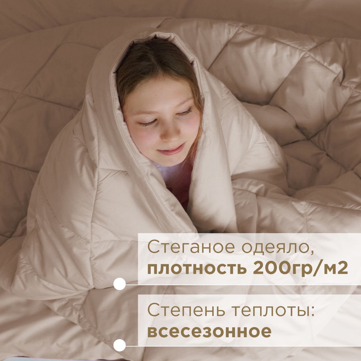 • Стеганое одеяло 140х205см. Одеяло всесезонное, плотность 200гр, что позволяет пользоваться им круглый год. Наполнитель у одеяла: гипоаллергенное 3D микроволокно, не сбивается после стирок.
