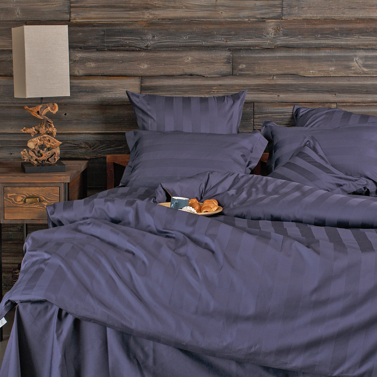 Однотонный комплект постельного белья - роскошный 100% египетский хлопок высшего сорта, с жаккардовым рисунком в виде полос 5х5см. Используется более тонкая 60-я нить. За счет специальной скрутки нити, ткань получается очень мягкая и приятная на ощупь. Имеет благородный блеск.