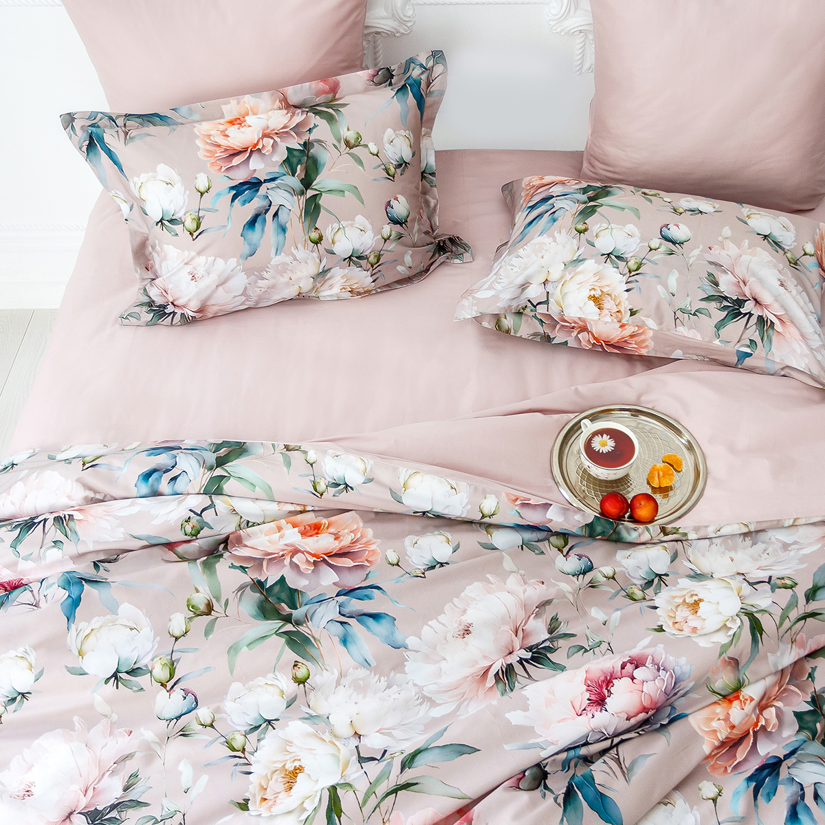 «Аделина» - утонченный цветочный рисунок создаст атмосферу нежности и спокойствия. Мягкие пастельные оттенки, переплетающиеся с акварельными мазками, создают ощущение воздушности и легкости. Яркие и детализированные цветы, выполненные в естественных тонах, как будто сошли с картины. Этот комплект прекрасно подойдет для тех, кто ценит элегантные и романтичные акценты в интерьере.
