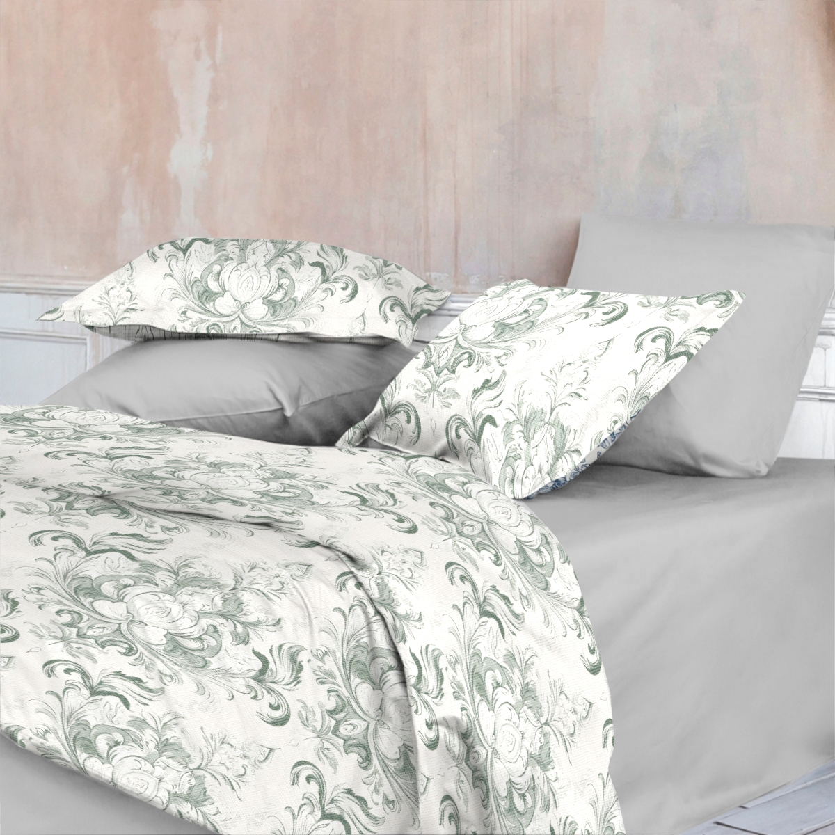 Представьте: Вы просыпаетесь на старинной вилле, где сквозь струящиеся шторы льётся золотой свет. За окном — сад. Не просто клумбы, а живой гобелен: бархатные пионы томятся под солнцем, синие глицинии сплетаются с виноградными лозами, а роскошные вензеля на решётках беседки повторяют узоры на вашем постельном белье…