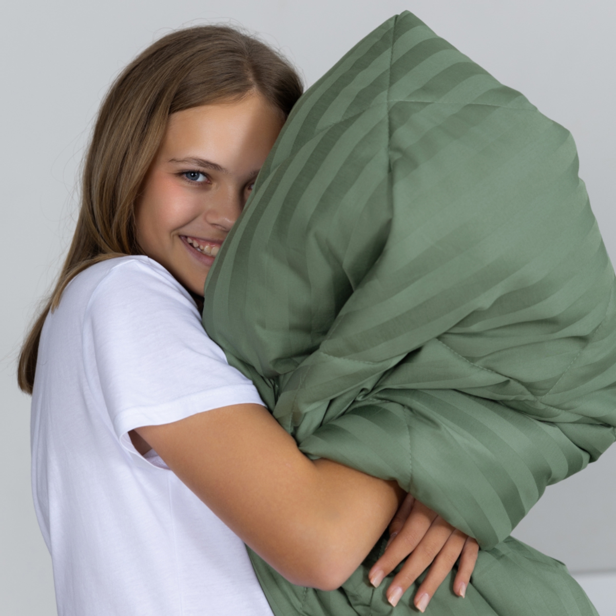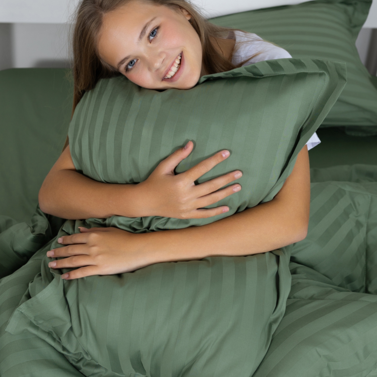 ПОСТЕЛЬНОЕ БЕЛЬЁ СТРАЙП-САТИН С ОДЕЯЛОМ 2 НАВОЛОЧКИ ЗЕЛЕНЫЙ