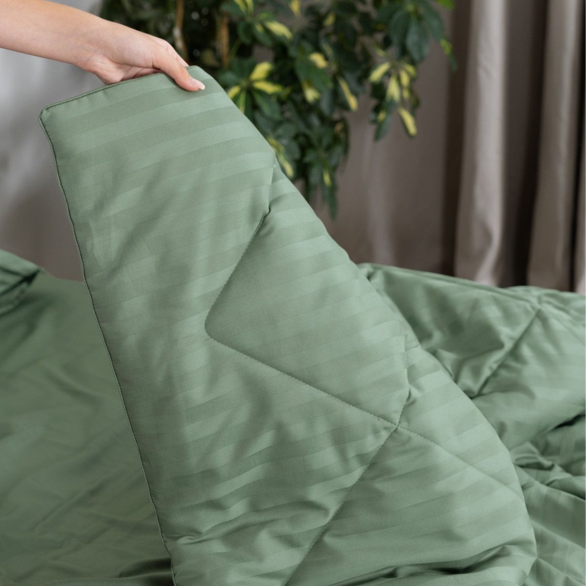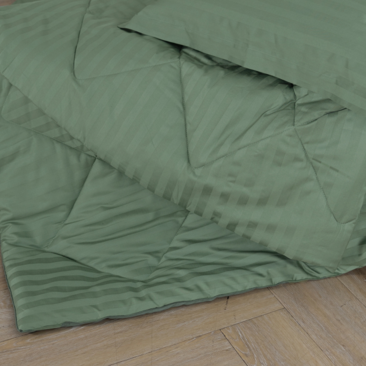Постельное бельё Cатин | ПОСТЕЛЬНОЕ БЕЛЬЁ СТРАЙП-САТИН С ОДЕЯЛОМ 2 НАВОЛОЧКИ ЗЕЛЕНЫЙ