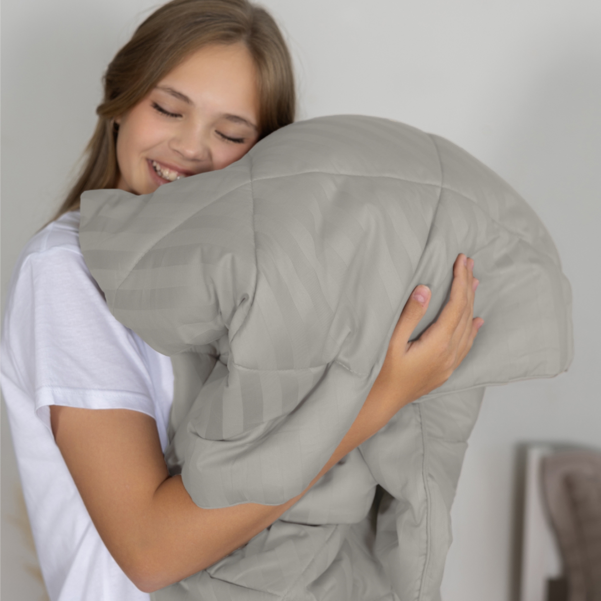 ПОСТЕЛЬНОЕ БЕЛЬЁ СТРАЙП-САТИН С ОДЕЯЛОМ 2 НАВОЛОЧКИ ДЫМЧАТЫЙ