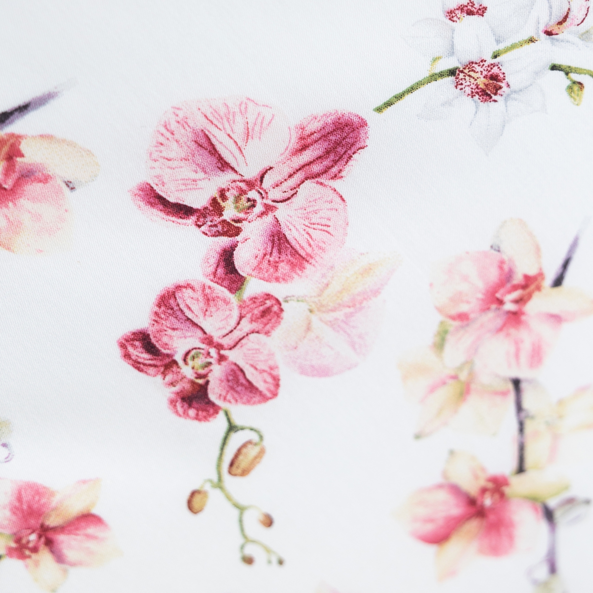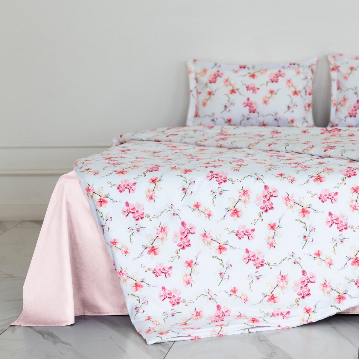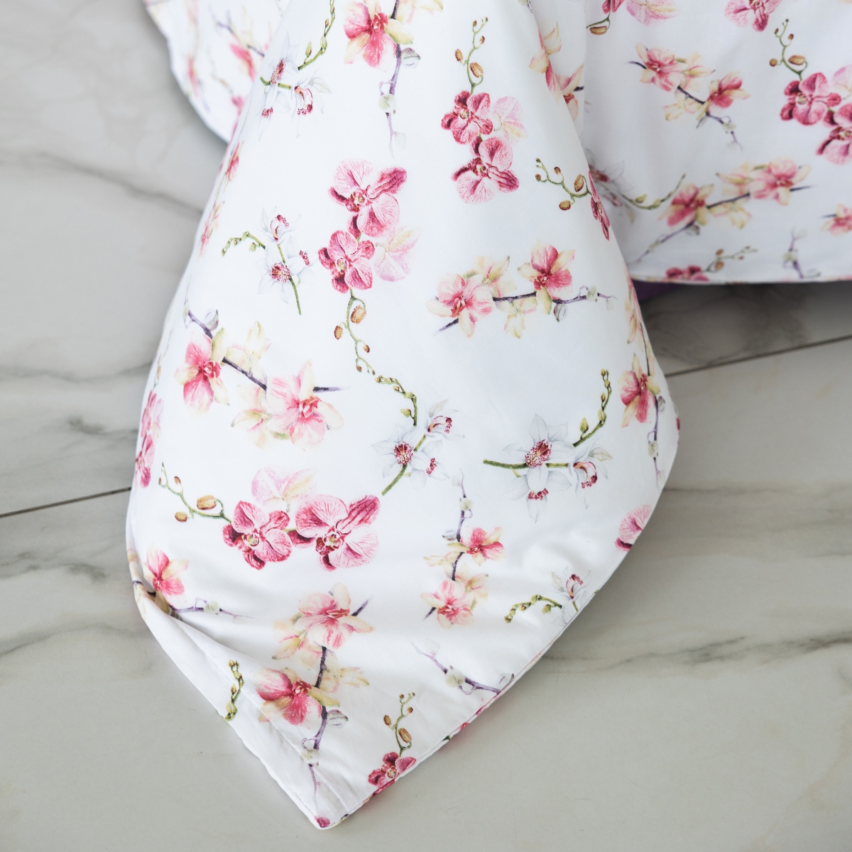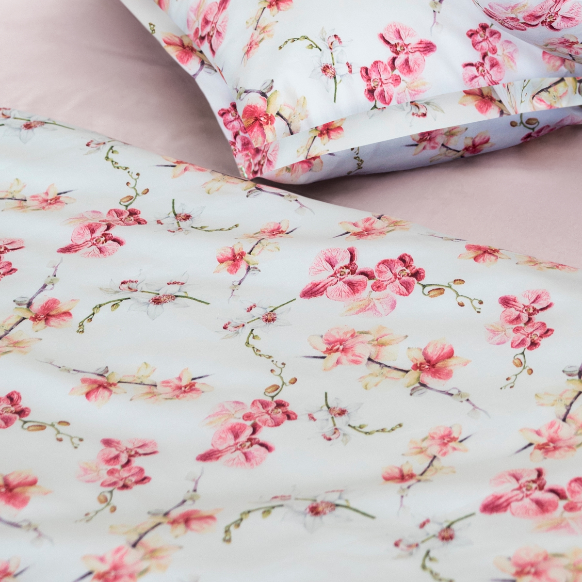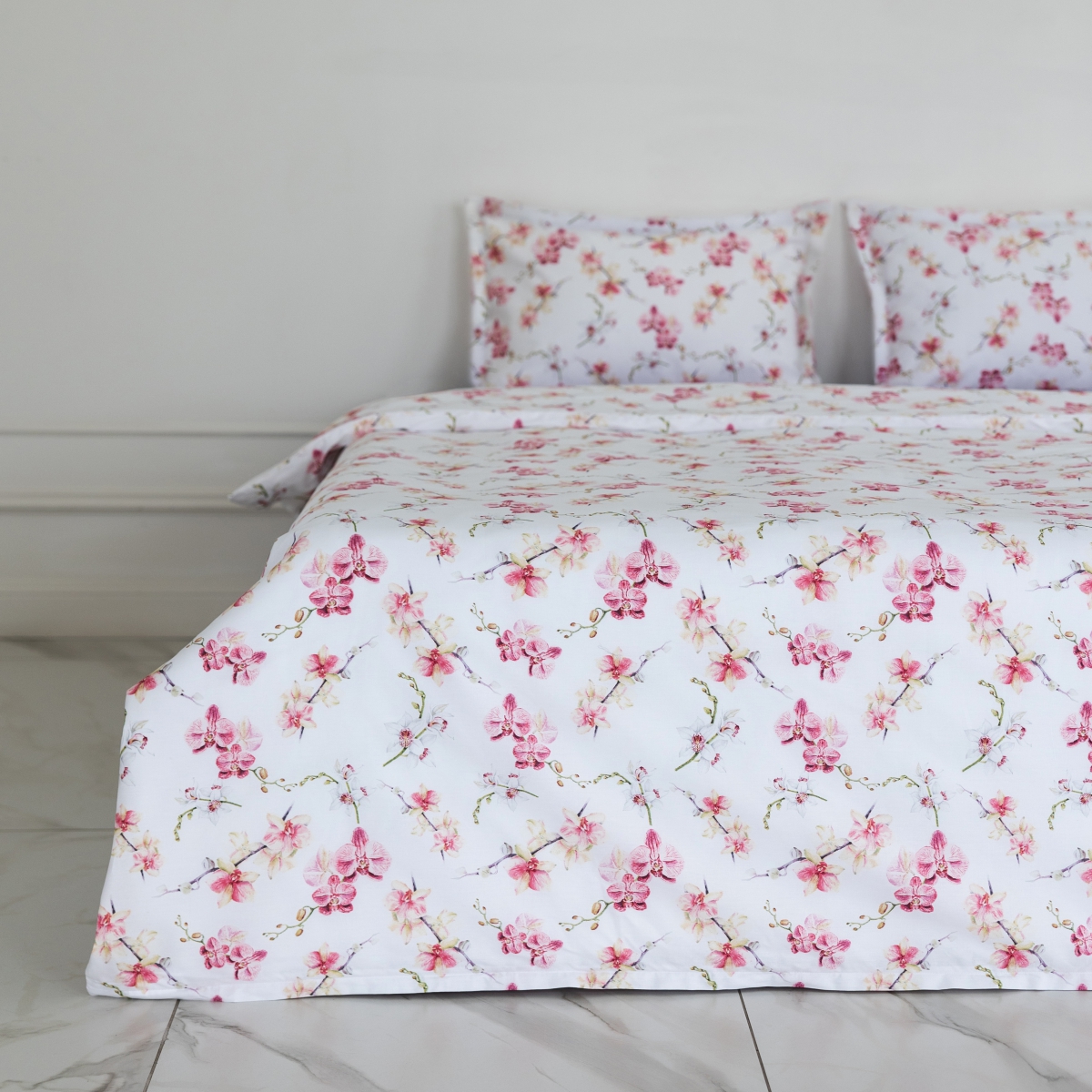 Дизайн «Этюд» - представьте утро, когда за окном — осенняя дымка, а в вашей спальне — по-летнему светло. Идеально белый фон комплекта, как первый искристый иней, отражает свет и наполняет комнату ощущением чистоты и простора. А утонченные орхидеи, застывшие в шелковистой глади сатина, — это напоминание о вашей собственной изысканности и внутренней силе. .