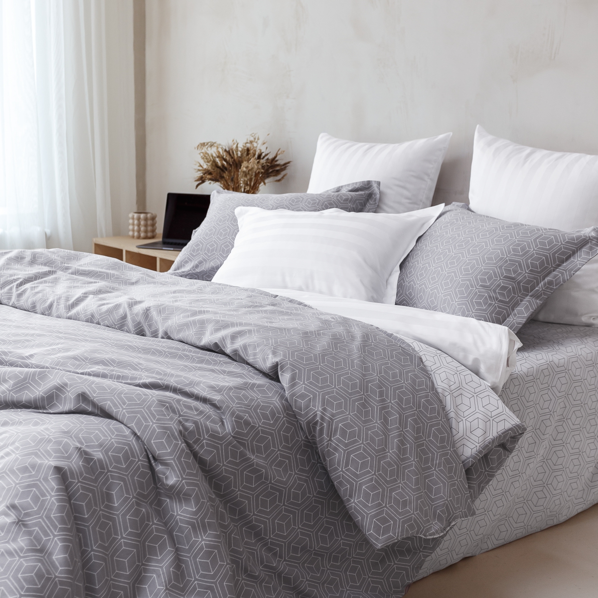 Эта ткань не требует специального ухода – легко стирается и гладится. Пропускает воздух, поддерживает комфортную температуру тела, когда вы спите. Гипоаллергенно.