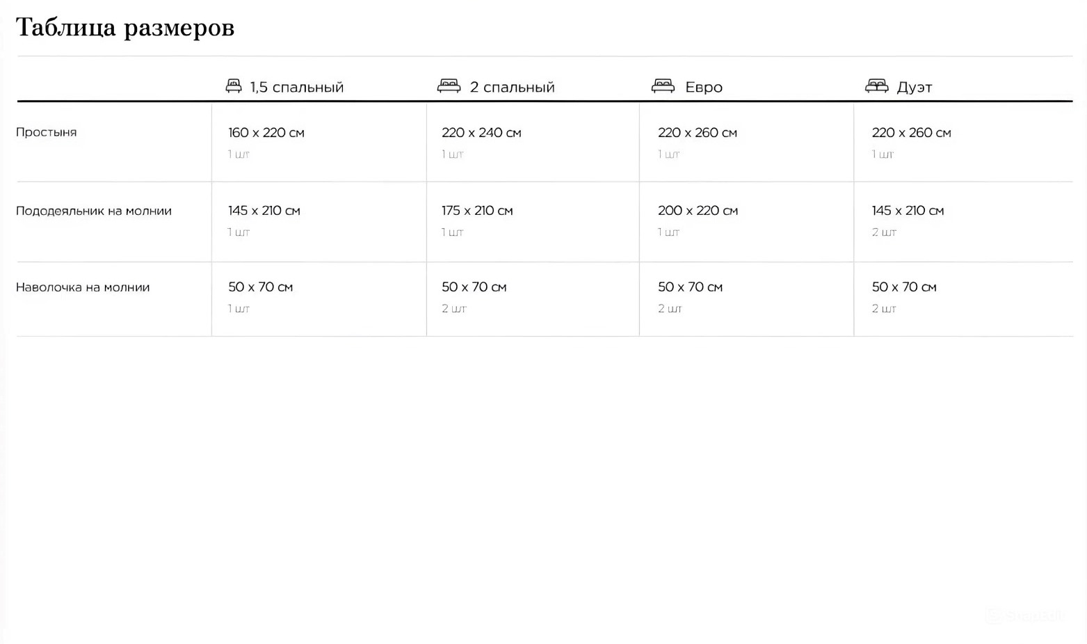 - Простыня 240х260 см в размерах постельного белья Евро и Семейном.