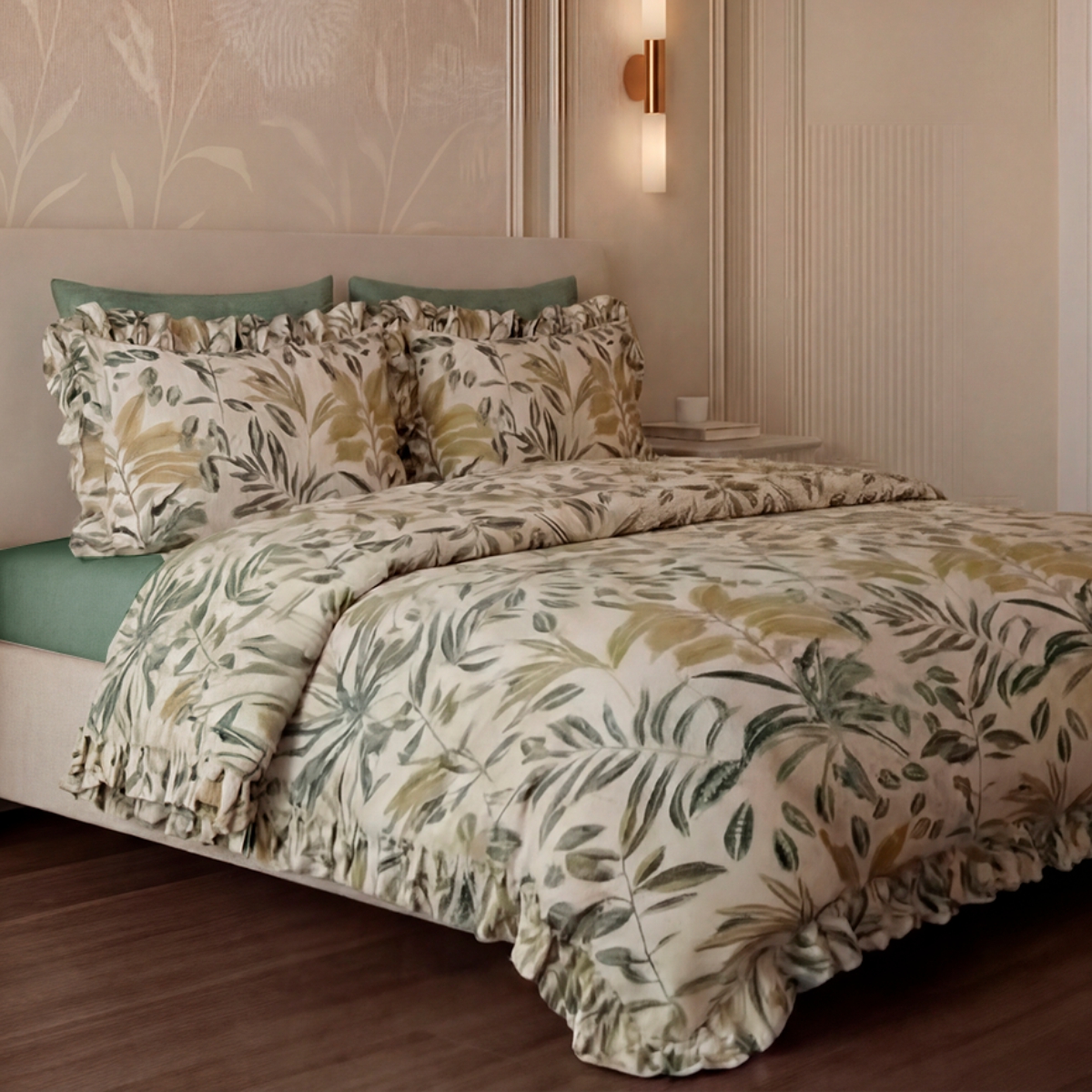 «Мариана»: Стильный растительный принт на молочно-бежевом фоне. Утонченный и современный. Привносит в спальню свежесть, легкость и природную гармонию.
