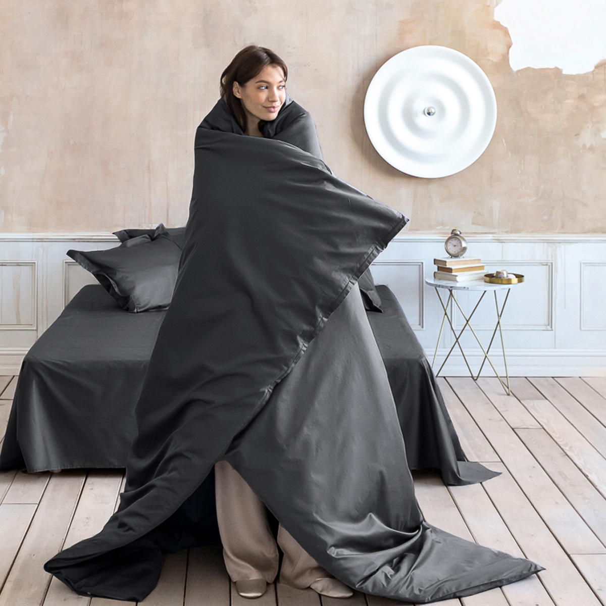 В уютном коконе из мако-сатина время течет иначе: здесь семь часов сна значат столько же, сколько десять в обычной постели. Здесь вы просыпаетесь от того, что тело отдохнуло по-настоящему.  Ваша спальня становится пространством абсолютной гармонии — где нет места городскому шуму и суете.