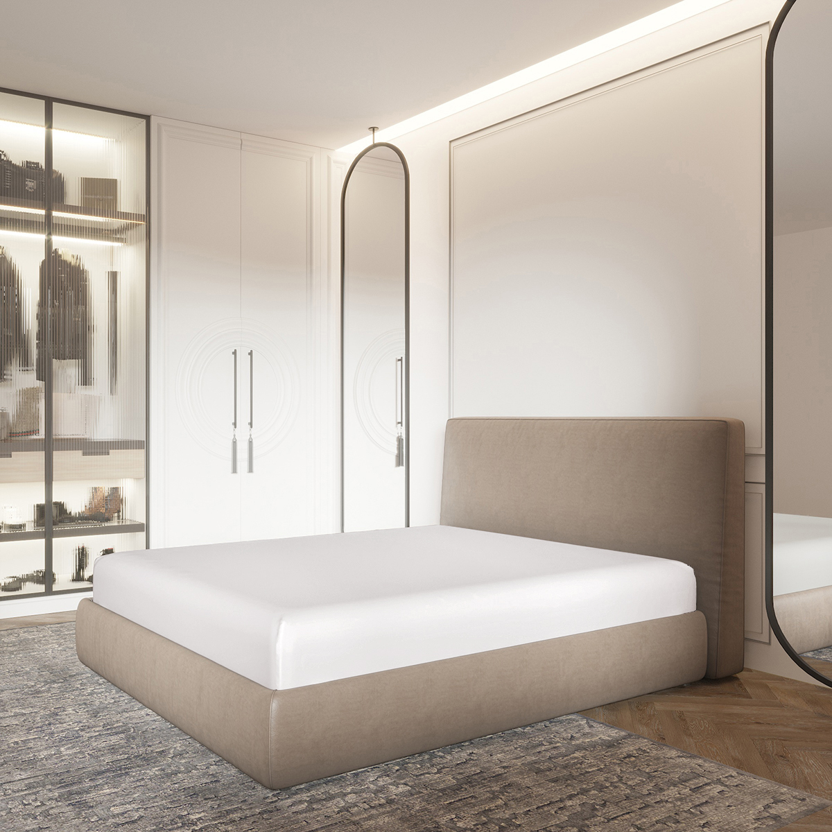 Детали: тонкая резинка по всему периметру простыни для плотной фиксации на матрасе. Высота бортика 30+5 см.