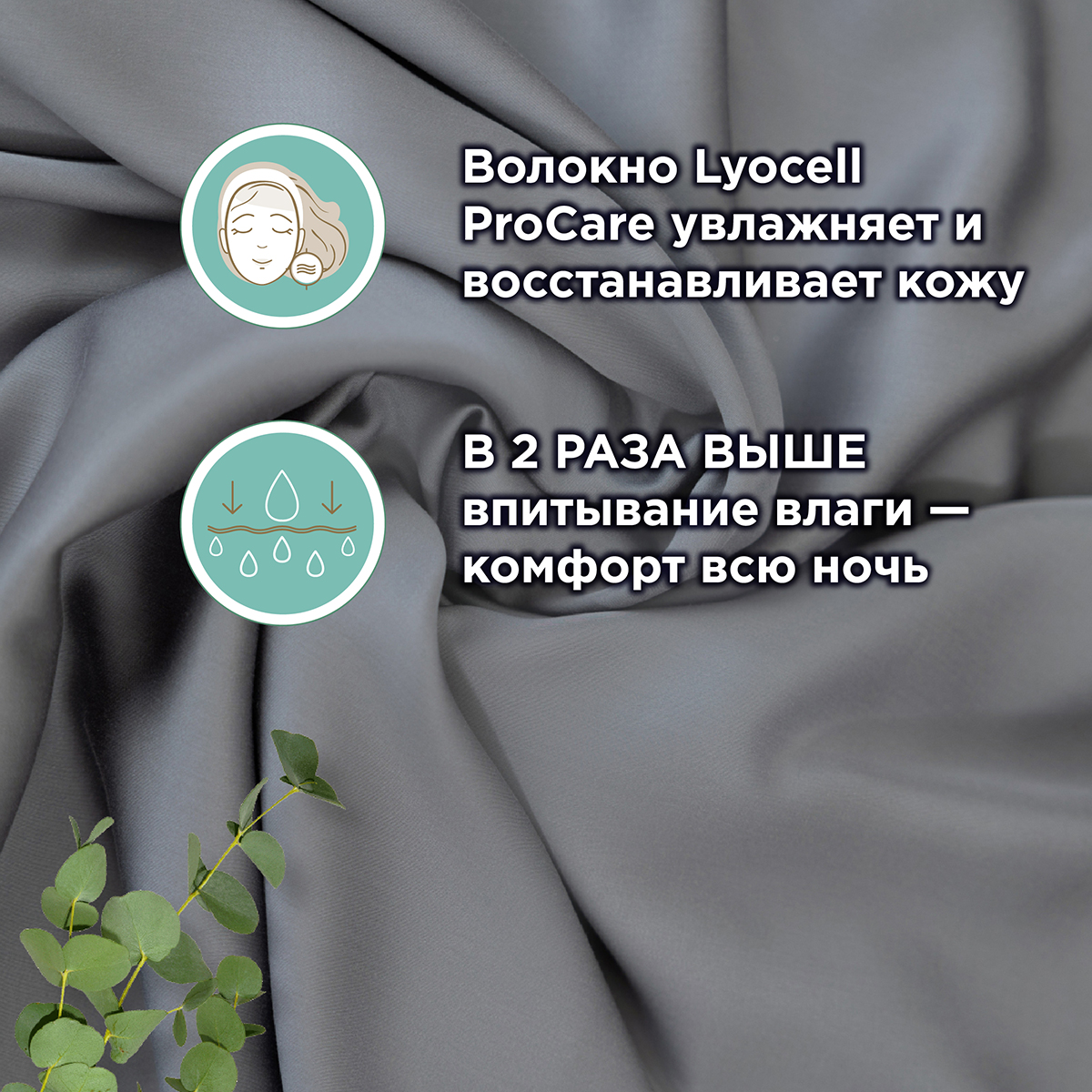 Уникальное волокно Lyocell ProCare обеспечивает восстановление водного баланса дермы. Отмечается увлажнение, смягчение и регенерация кожи. Кроме того, показатель впитывания влаги в 2 раза выше, чем у других тканей – гарантия комфорта на протяжении ночи.
