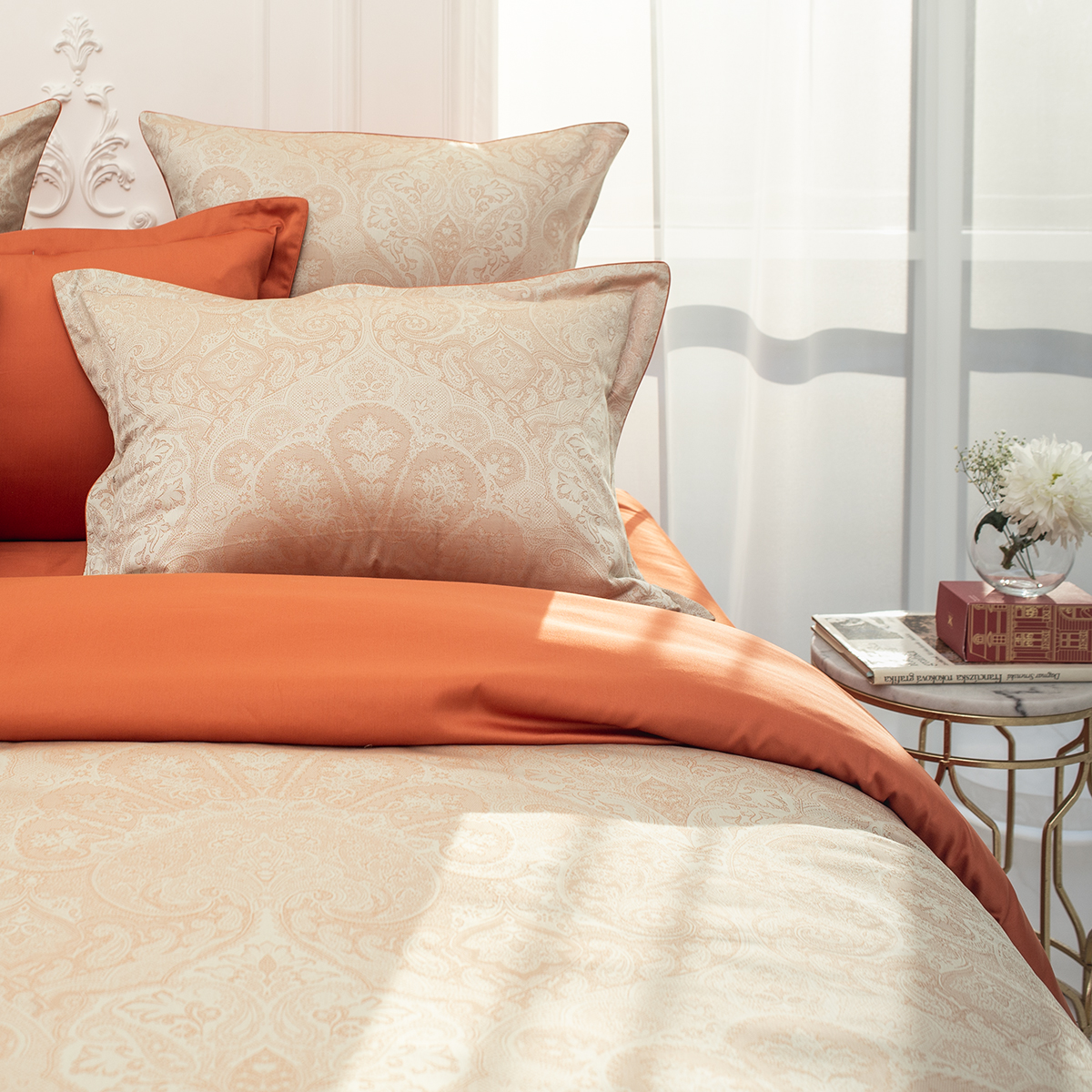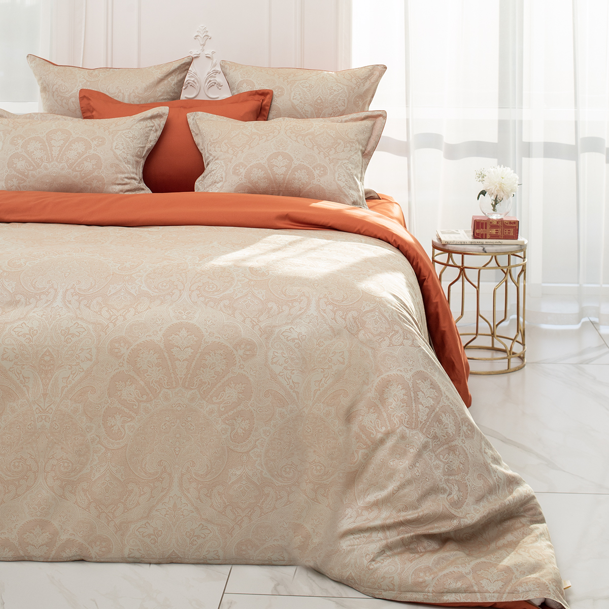 Внешне жаккардовое постельное белье выглядит очень дорого и изысканно. Благодаря тому, что нити в процессе производства перекручиваются, жаккардовая ткань очень плотная, прочная и устойчивая к деформированию, а рисунок и цвет не тускнеют в процессе эксплуатации.